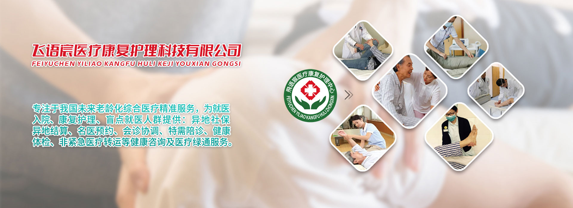 深圳市飛語宸醫(yī)療康復護理科技有限公司,是一家專注于健康產業(yè)領域中具有卓越影響力的創(chuàng)新型服務企業(yè)。公司致力于為社會提供全方位、高品質的醫(yī)療、康復、護理及人工智能綠通就醫(yī)服務。憑借前沿最先進的醫(yī)療技術信息和專業(yè)的團隊,注重服務深耕細作,為解決健康綠通服務壁壘,相繼融通全國各地數百家實力派醫(yī)療機構、養(yǎng)老機構、護理機構、陪診機構、陪護機構、助浴機構的社會資源力量,使醫(yī)療綠通精準服務于社會。